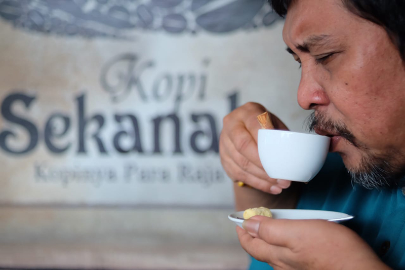 “Kopi Sekanak adalah brand kopi para raja, diracik dengan sistem rempah-rempah,” katanya.