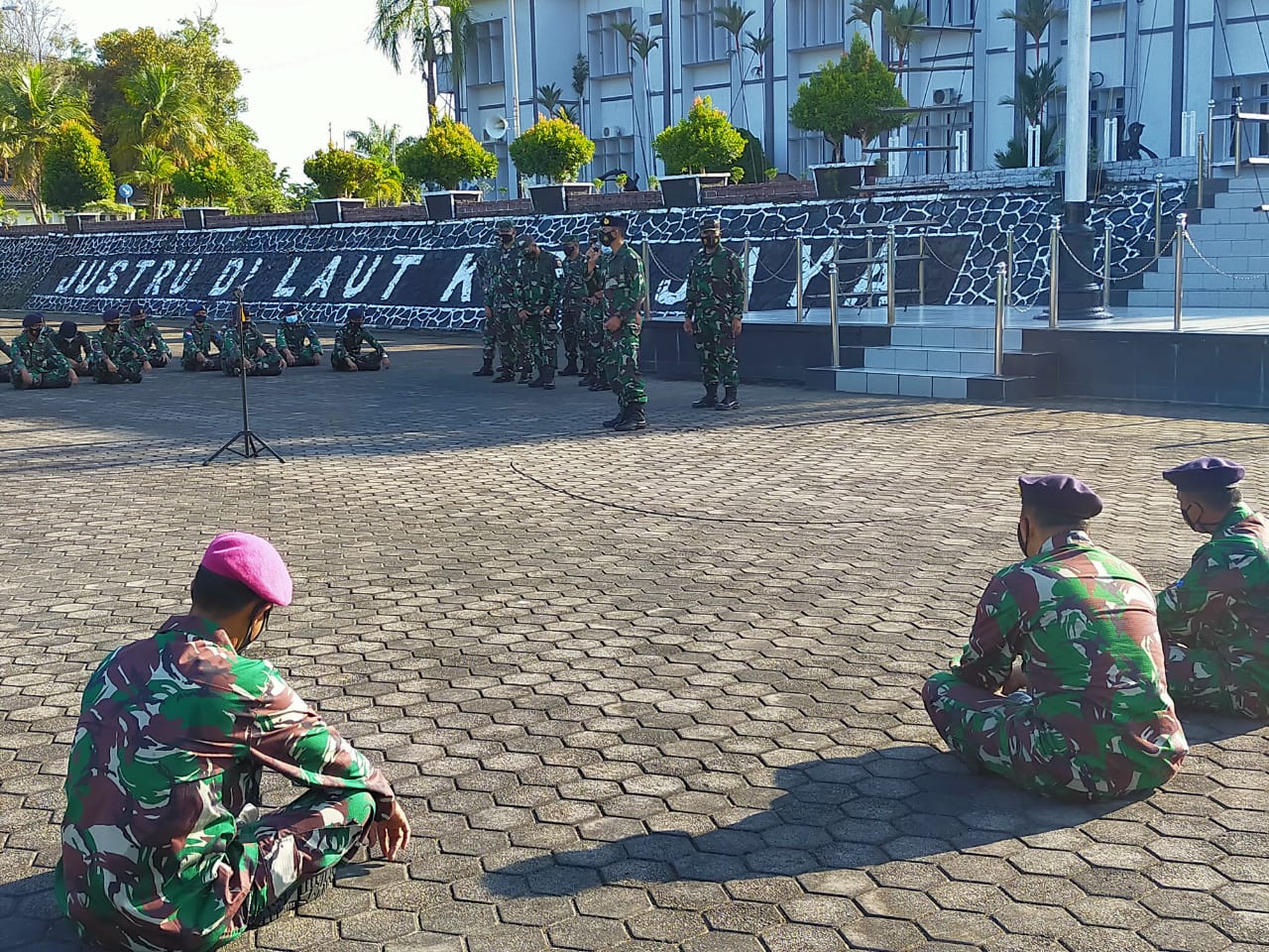 KABARTIGA, TANJUNGPINANG – Asisten Perencana dan Anggaran Komandan Pangkalan Utama TNI AngkatanLaut (Asrena Danlantamal IV) Kolonel Laut (S) Dwiarmanto, S.T., M.Ak., M.Tr.Hanla., M.M., usai apel pagi, beri sosialisasi tentang Pelayanan Publik tentang mekanisme menerima tamu-tamu yang akan berkunjung ke Mako Lantamal dalam rangka menuju Wilayah Bebas dari Korupsi (WBK) dan Wilah Birokrasi Bersih Melayani (WBBM) kepada segenap Prajurit dan PNS Lantamal IV Tanjungpinang yang berlangsung di lapangan apel Mako Lantamal IV Jl. Yos Sudarso No.1 Batu Hitam Tanjunginang Kepri, Senin pagi (31/5/2021).