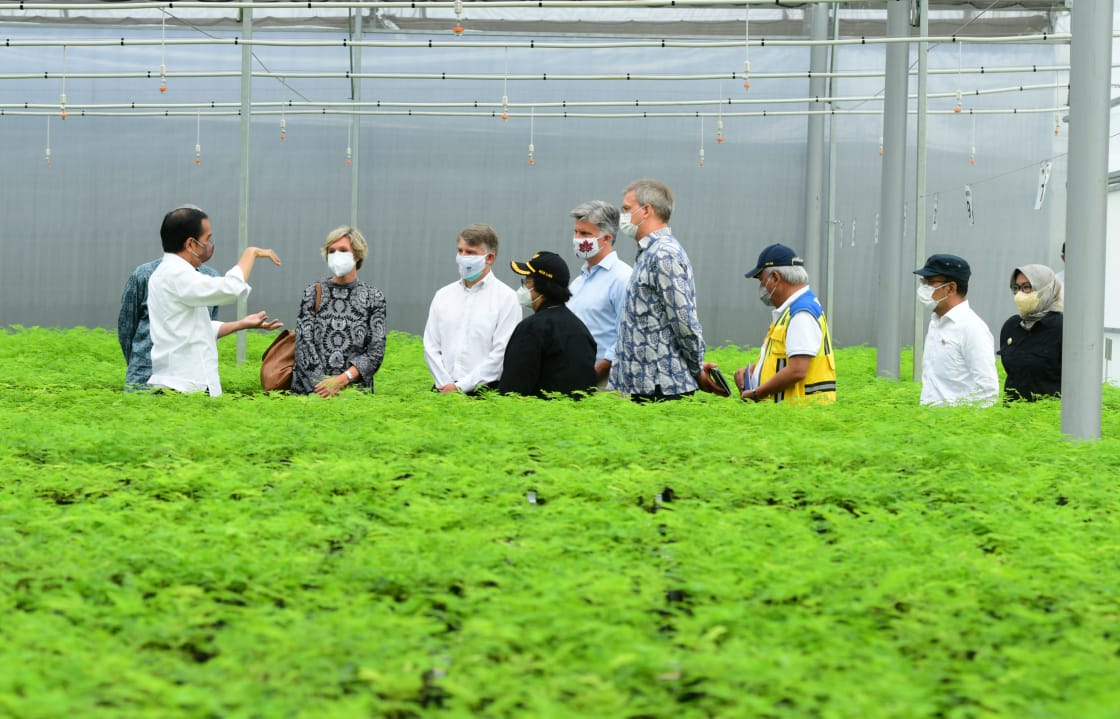 “Kita ingin menunjukkan bahwa Indonesia serius dalam menangani dampak dari perubahan iklim dan kita tunjukkan nursery center ini yang bisa setahun memproduksi kurang lebih 12 juta bibit,” ujar Presiden dalam keterangannya selepas peninjauan.