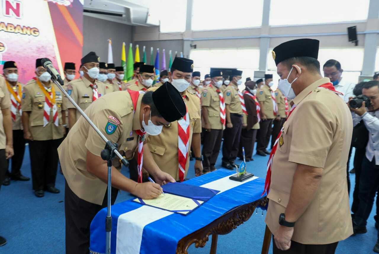 KABARTIGA, BINTAN – Gubernur Kepulauan Riau Ansar Ahmad selaku Ketua Majelis Pembimbing Daerah (Mabida) Gerakan Pramuka Kepri melantik Ketua dan Pengurus Majelis Pembimbing Cabang (Mabicab) serta Ketua dan Pengurus Kwartir Cabang (Kwarcab) Gerakan Pramuka Bintan Masa Jabatan 2022-2027 di Aula Kantor Bupati Bintan, Rabu (13/07).