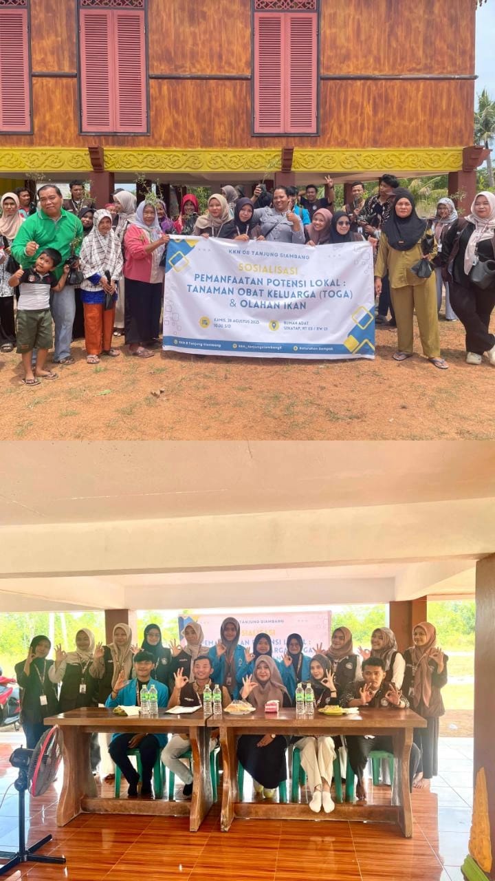 KABARTIGA.ID, Tanjungpinang – Kelompok Kuliah Kerja Nyata (KKN) 08 Tanjung Siambang melaksanakan kegiatan Sosialisasi Pemanfaatan Potensi Lokal: Tanaman Obat Keluarga (TOGA) dan Olahan Ikan di wilayah RT 03 Sekatap, Kamis (28/8). Kegiatan ini berkolaborasi dengan UPTD Instalasi Farmasi Dinas Kesehatan Provinsi Kepulauan Riau dan diikuti antusias oleh masyarakat setempat.