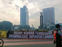 Aksi Tolak RKUHP Spanduk Terbentang di CFD Bundaran HI