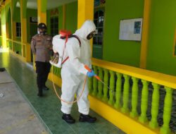 Jelang Hari Raya Idulfitri, Polisi Semprot Masjid Dengan Cairan Disinfektan